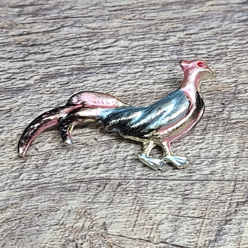 Vintage Enamel Peacock Brooch Pin 2" Long Costume Jewelry