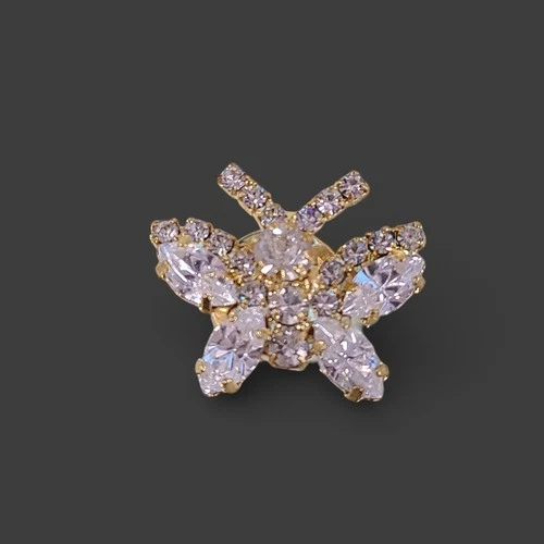 Unmarked Butterfly Rhinestone Brooch Pin Gold Tone 7/8 in Crystal Lapel Pin