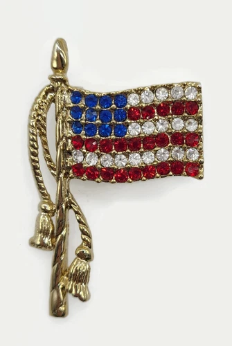 American Flag Brooch Lapel Pin USA National Flag Sparkling Rhinestone