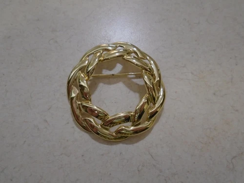 Open Weave Pin Brooch Brass Tone Gold Tone 2" Circle Vintage Fashion Cute