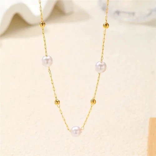 Gold Plated Pearl Bead Necklace Minimalist Chain Pendant Jewelry Women
