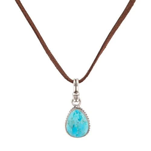 Basic Blue Turquoise and Silver Pendant Leather Necklace