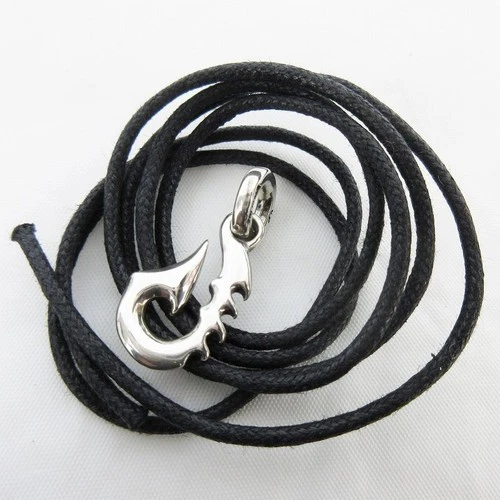 BWL Bill Wall Leather Sterling Silver 925 Fish Hook Charm Leather Cord Necklace