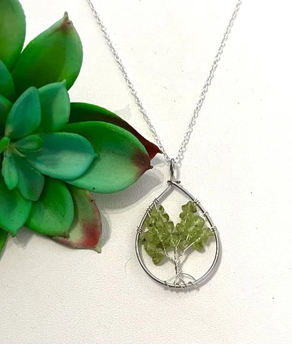 Natural Peridot Chip Tree of Life 18” Necklace