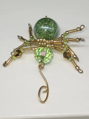 Artisan Made Spider Pendant Movable Legs Green Faceted Rhinestone Head Unique