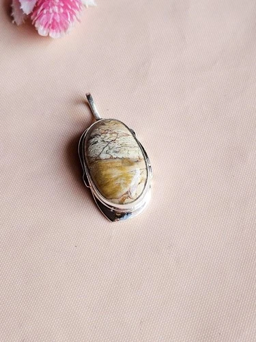 925 Silver Overlay PICTURE JASPER Stone Designer Pendant