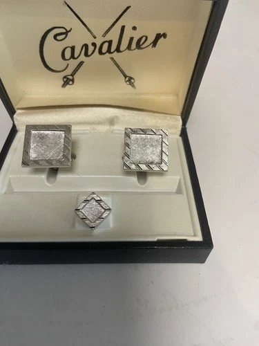 Cavalier Men's Silver Tone Jewelry Set Cufflinks & Tie Tack