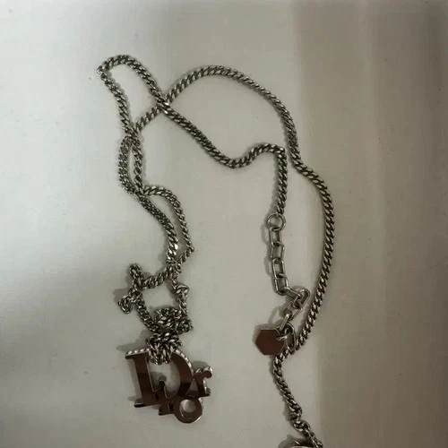 Dior Oblique Logo Men's Necklace Silver Chain & Pendant