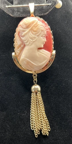 VTG Large Cameo Pendant (Only) Gold Tone Victorian Revival Tassel Statement