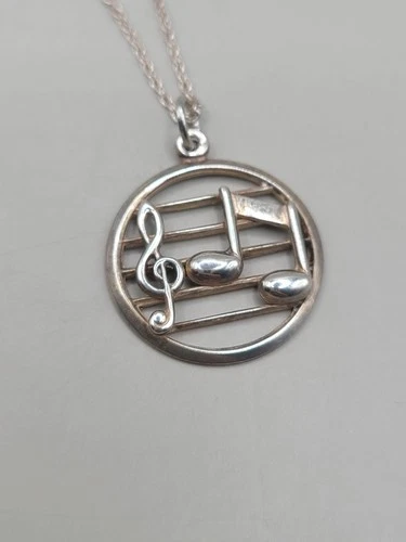 Vtg Beau Sterling Silver 925 Treble & Clef Round Pendant 16" Necklace Signed