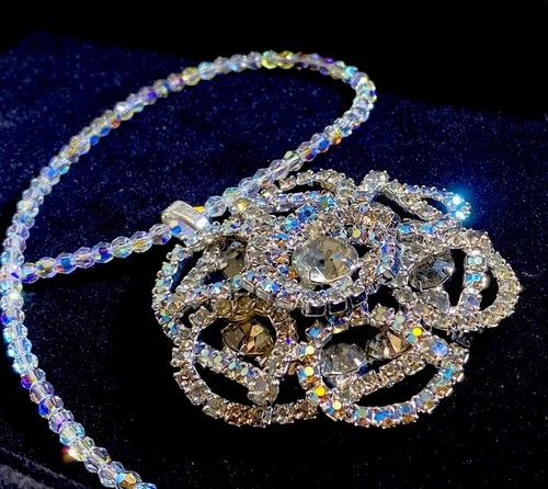 Vintage AB Rhinestone Swirl Brooch Pendant & Necklace Weiss Kramer Style