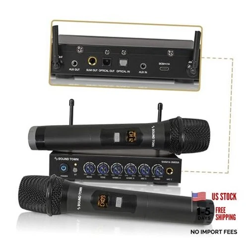 100 Channels Wireless Microphone Black, 2 Metal Mics, Optical & Aux In/Out