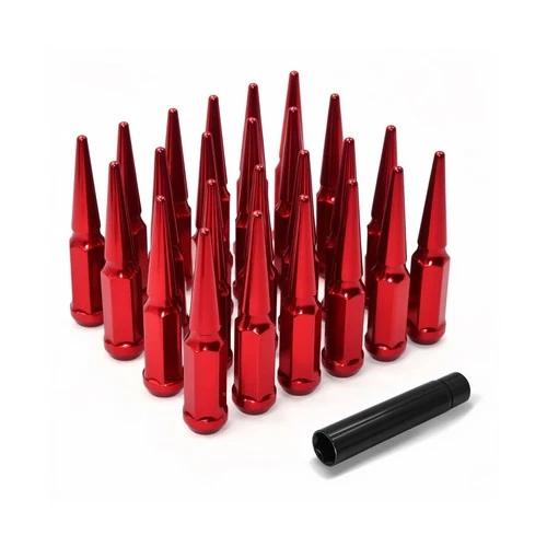 M14X1.5 Red Wheel Spike Lug Nuts, 24 PCS Lug Nut Wheel Accessories with 1 Soc...