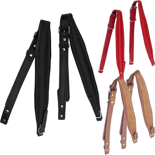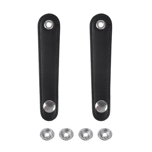 10cm Hole Distance PU Leather Adjustable Accordion Bellow Straps Set of 2 Black
