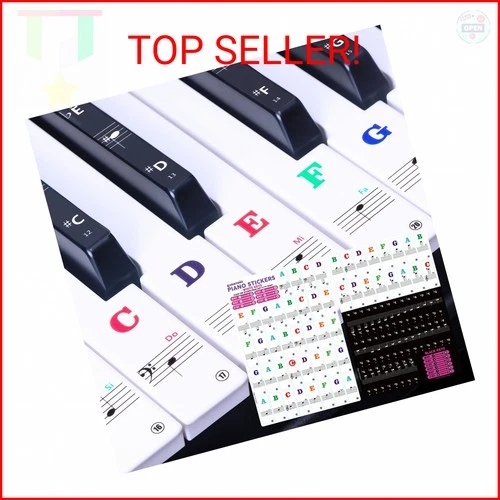 Piano Note Stickers Removable for 61-54-49-37 Key Standard Full-Size Keyboard,Pi
