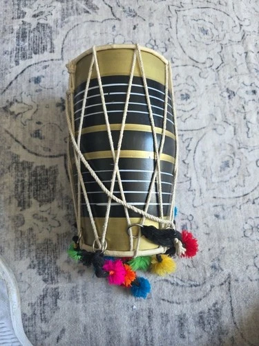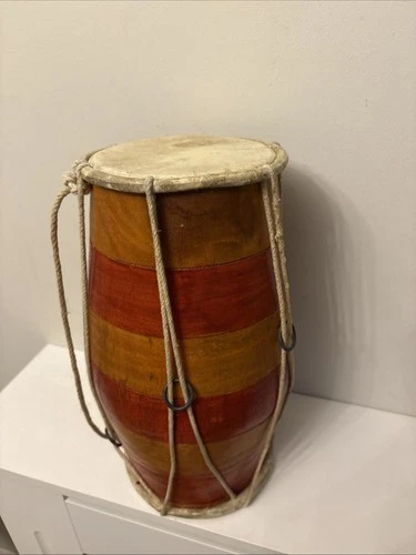 Vintage Drum Dholak Indian Double-headed Rustic Folk Hand Crafted