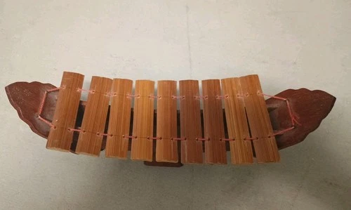 Vintage Thai Carved Teak Wood Xylophone Folk Art Instrument Pre-owned