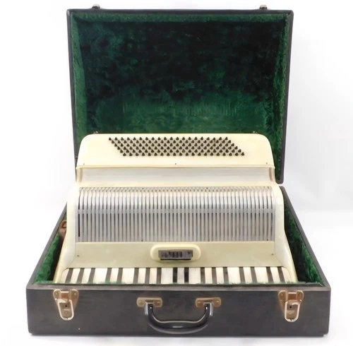 Vtg 40s Rossini Piano Accordion Pearl White W/Original Hard Case Italy Rare