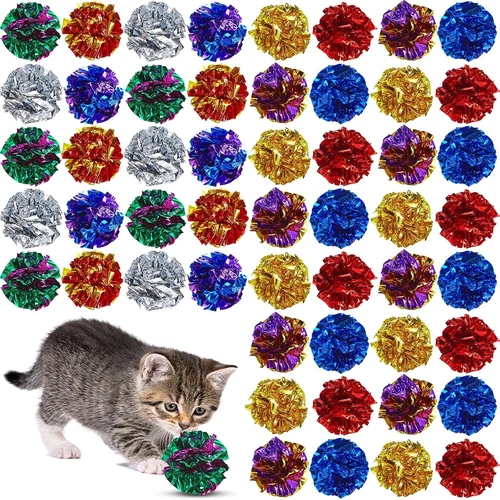 104 Pcs Cat Crinkle Ball Bulk Cat Toys 1.69'' Polyester Film Kitten Balls Intera