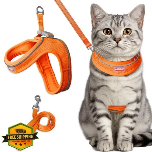 Orange XS Cat Harness Leash Set Escape Proof Kitten Walking