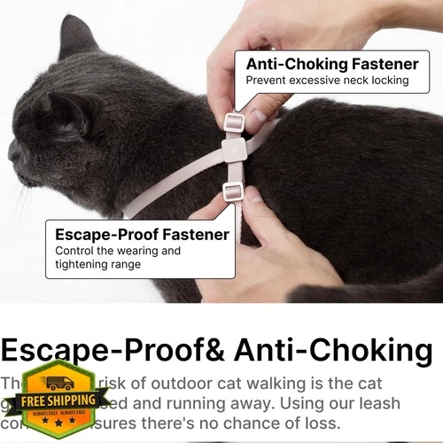 Pink Cat Harness Leash Set Escape Proof M Reflective