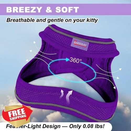 Purple M Cat Harness Leash Set - Escape Proof Lightweight