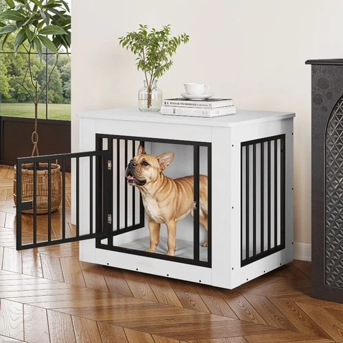 30.1" Dog Crate Furniture 2-in-1 Iron-Wood Indoor Dog Cage with Lockable Door