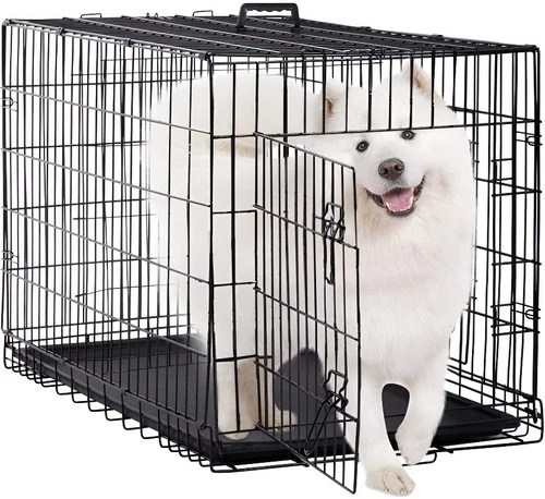 48" Folding Metal Wire Divider Dual Door Plastic Tray Perfect for Travel Camping