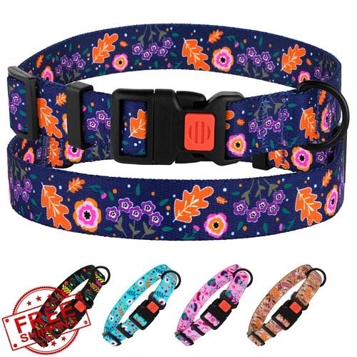 Nylon Floral Dog Collar Navy Blue 12-16 inch
