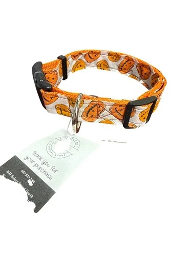 Pumpkin Halloween Adjustable Dog Collar 16-20 Inches Jack-O-Lantern Design Durab
