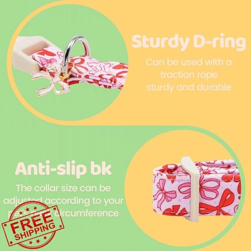 Bobo Dog Collar Small Pink Bowknot Print Adjustable Pet Holiday Gift