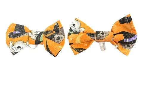 Set of 2 MATCHING Halloween Dog Bow Tie With Glittery Orange Fabric & Witch Hat