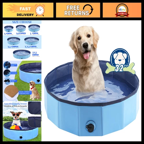 Foldable Dog Pool 32" x 8" - Collapsible Non-Slip Bath Tub for Kids & Pets