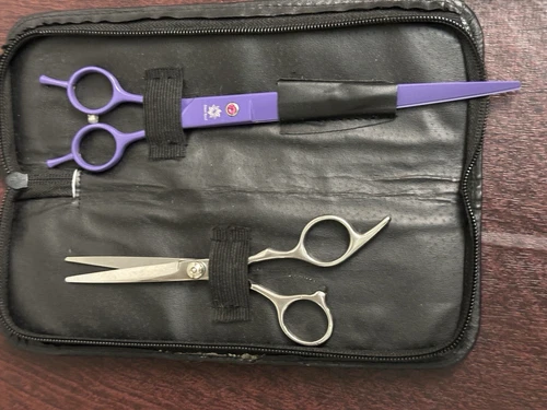 Set Of 2 - Stainless Scissors - Purple Straight Dog Pet Grooming Fur Clippers