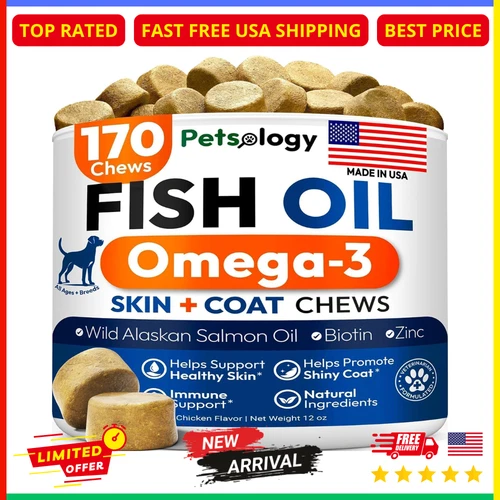 Fish Oil Omega 3 Dog Soft Chews 170 Skin Coat Health Supplement