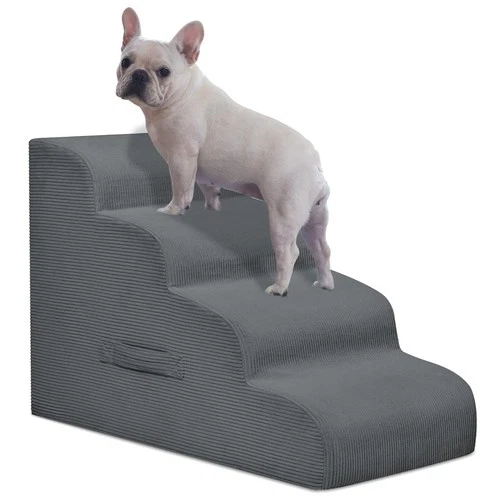 4-Step Dog Stairs and Ramp for Beds or Couches,Non-Slip Sturdy Pet Steps for ...