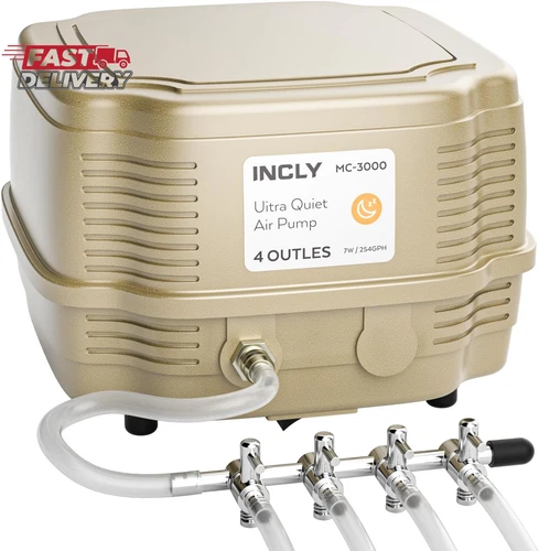 INCLY 7W Ultra Silent Aquarium Air Pump - 245 Gallon/Hr, 4 Adjustable Outlets -