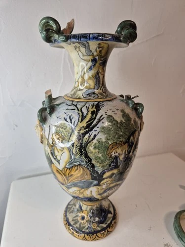 19th Century Italian Majolica Vase - Mythological Decor - To Restore