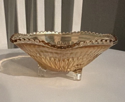 Vtg Marigold Amber Depression Carnival Glass Candy Trinket Dish Bowl 3-Footed
