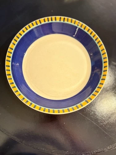 Vintage Pier 1 Large Bowl- Blue Lines On Yellow Italy, Hand Painted