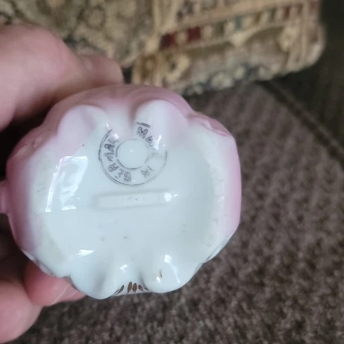 Germany Pink and White Porcelain Creamer Glossy Finish Printed Backstamp