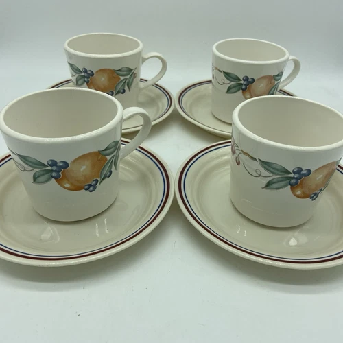 Corelle Corning Abundance Set Of 4 Cups Saucers USA GOOD Vintage Cream Fruit