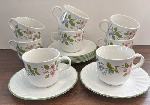 Corelle Delicate Array Stoneware Coffee Cups & Coordinated Saucers - set of 8