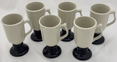 Set Of 6 Vtg HALL 1272 Mugs Footed 5.5" Irish Coffee Cups Evergreen Green White