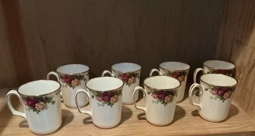 Royal Albert Bone China 8pc. Set Coffee Mugs Old Country Roses Pattern