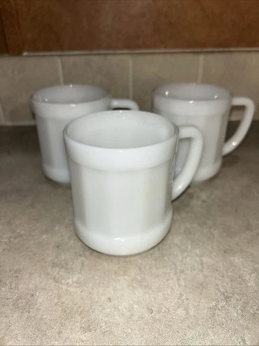 Vintage Federal Glass Pressed White Milk Glass Mug (3), Textured Panel Sides USA