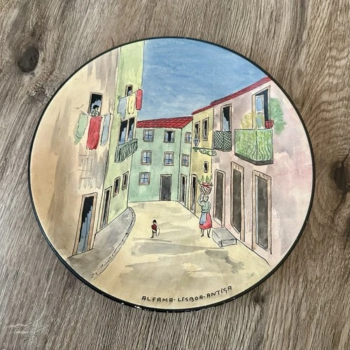 Handpainted Portuguese Art Pottery Plate Souvenir Vtg 8” Alfama Lisboa Antiga