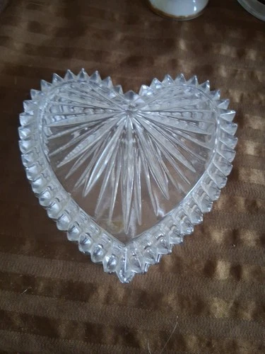 WATERFORD SIGNED LEAD FACETED CRYSTAL HEART SHAPE JEWELRY TRINKET DISH 3" VINTAG