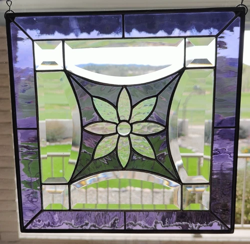 BEVELED STAINED GLASS Window Panel Suncatcher 11.5" x 11.5"