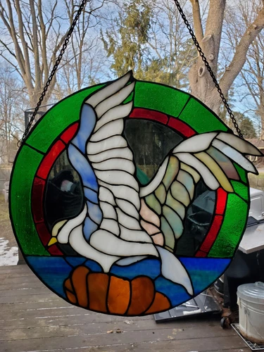 Vintage Bird Stained Glass Window Hanging Panel Suncatcher Round 16"
